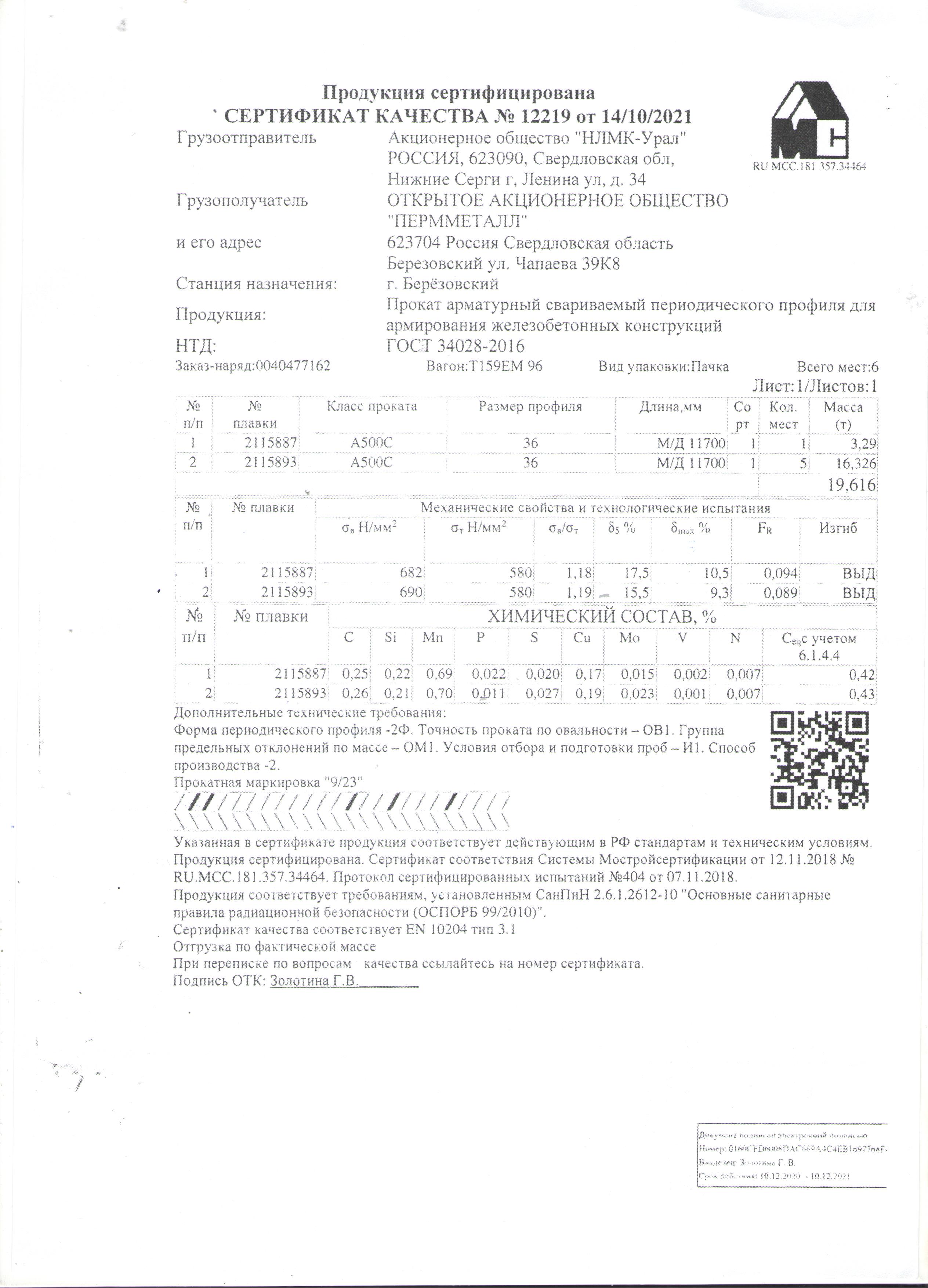 Арматура 36 А-III А500С ГОСТ 34028-2016 1/11,7м