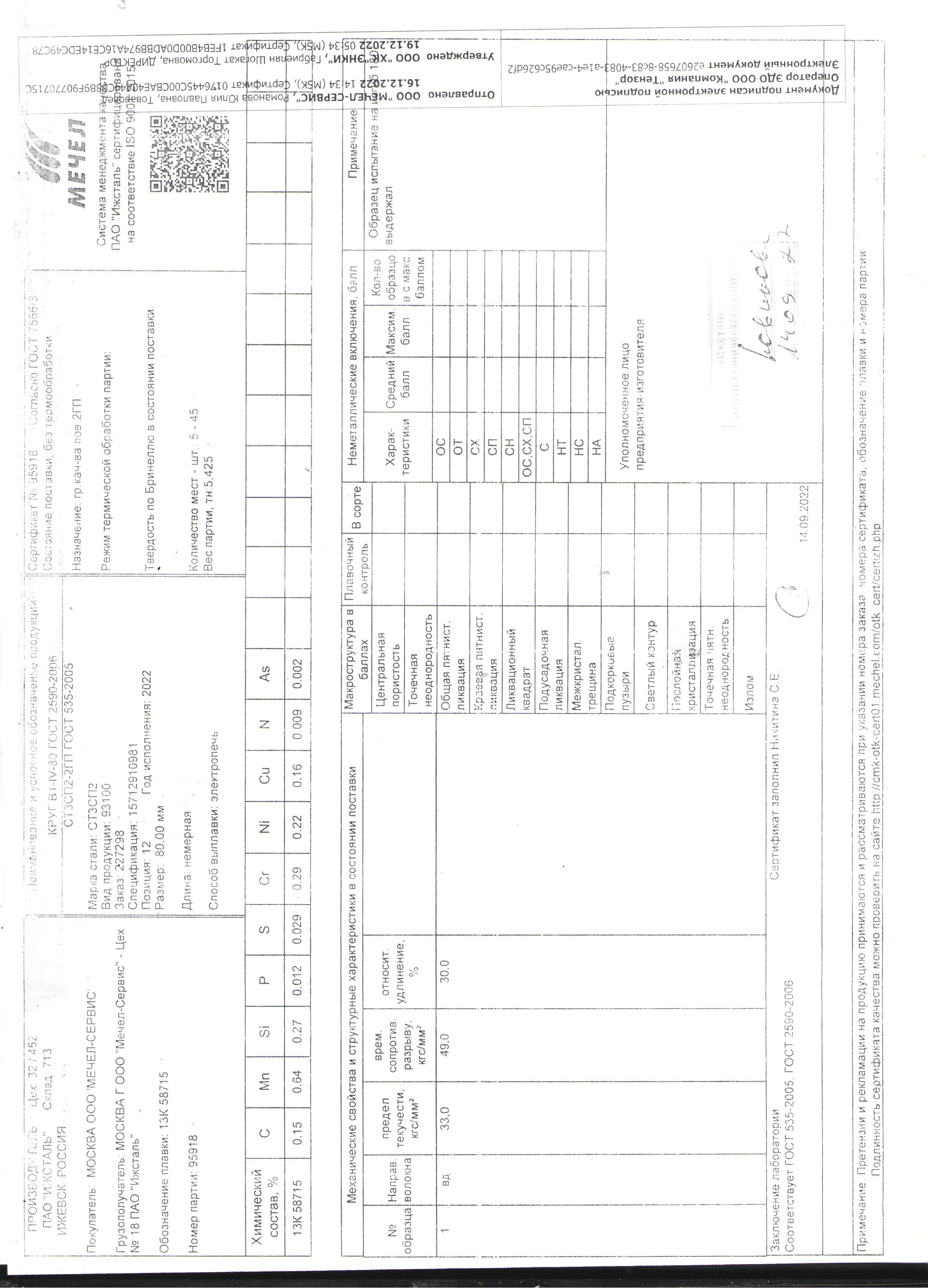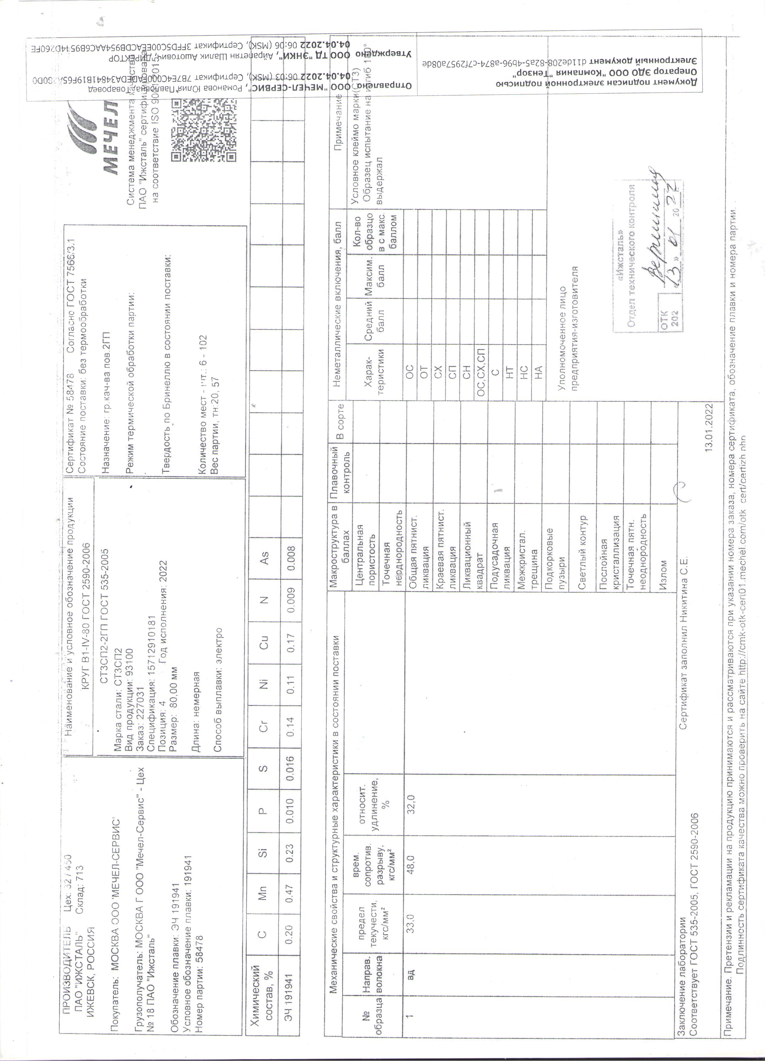Сертификаты на товар