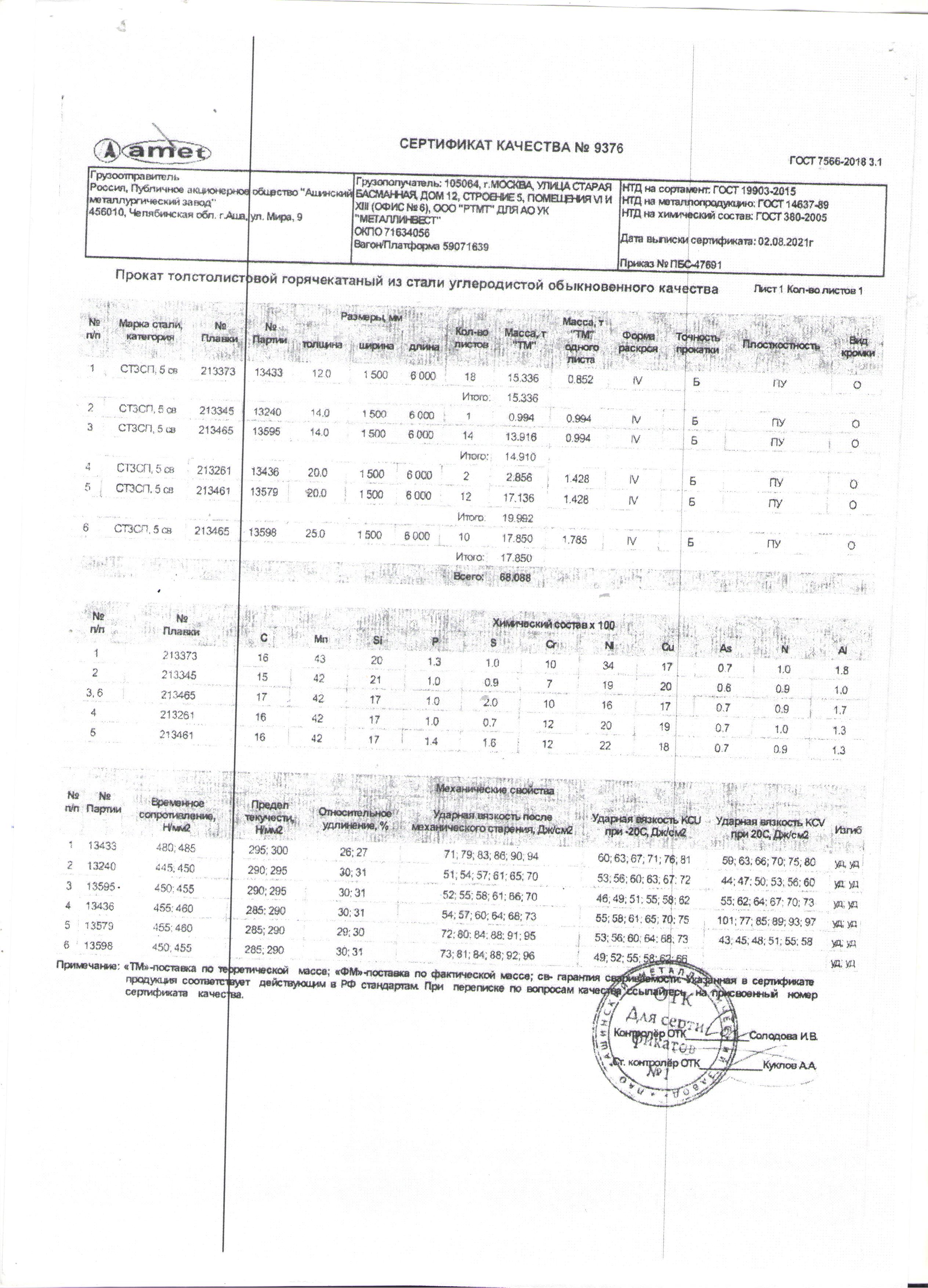 Сертификаты на товар