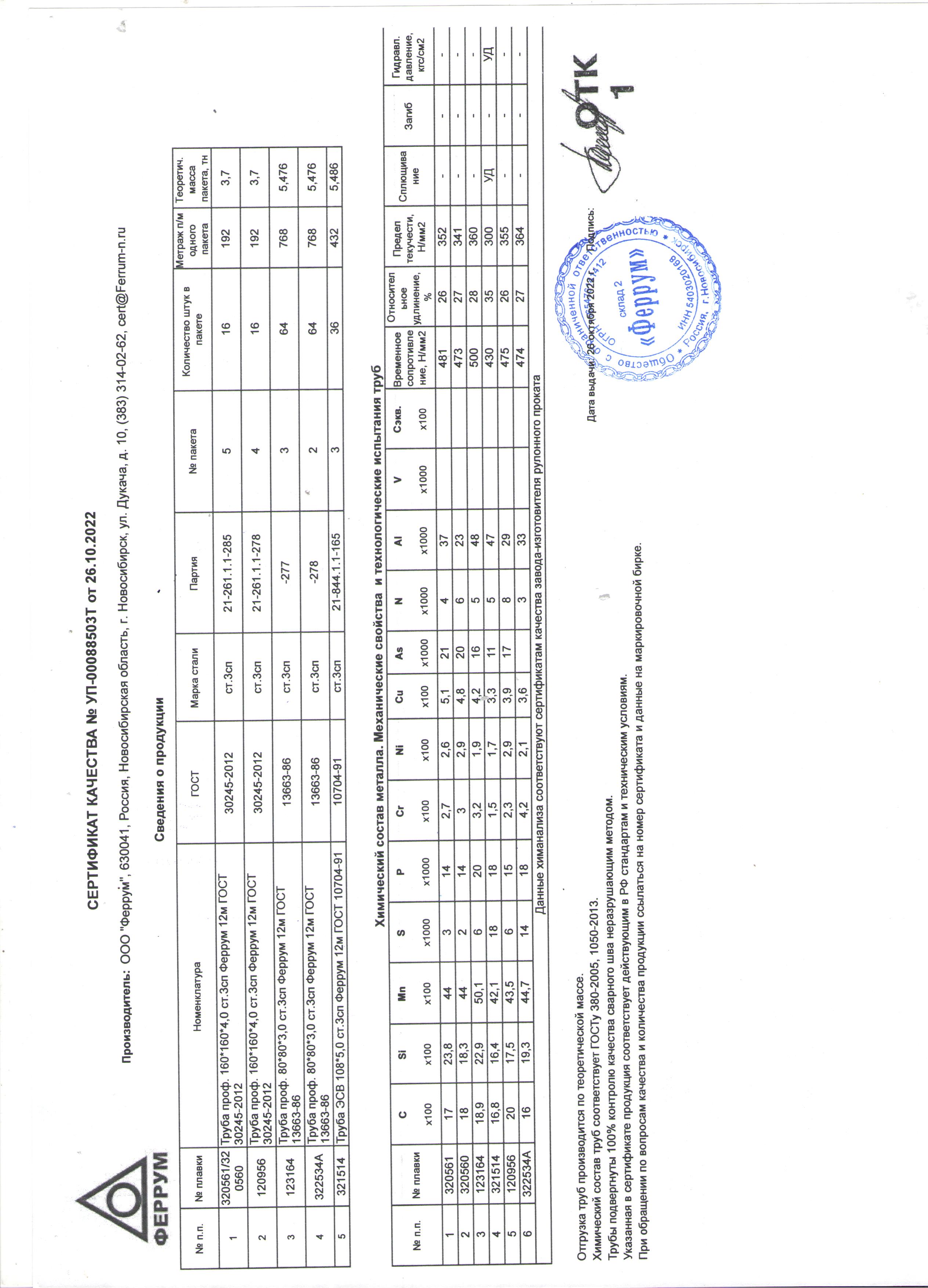 Сертификаты на товар