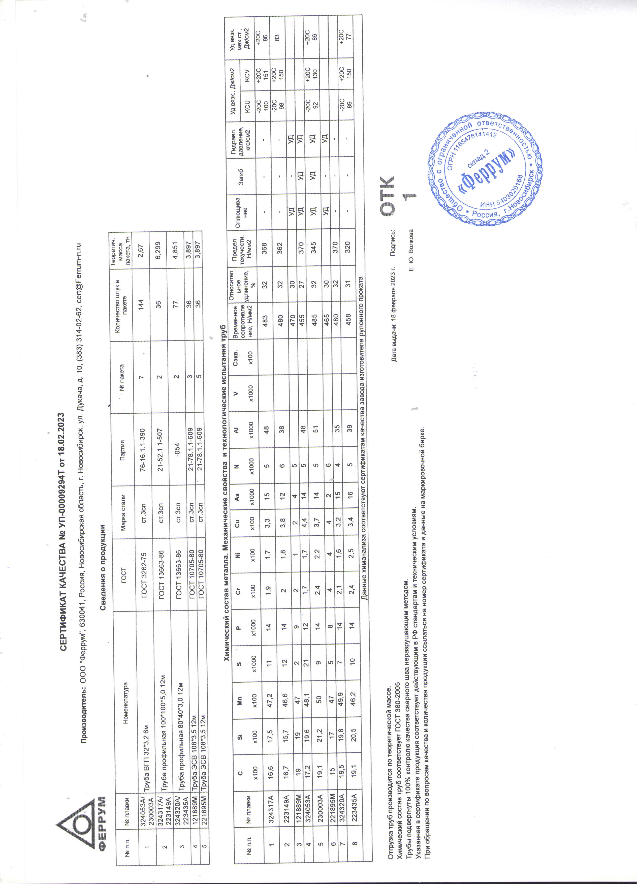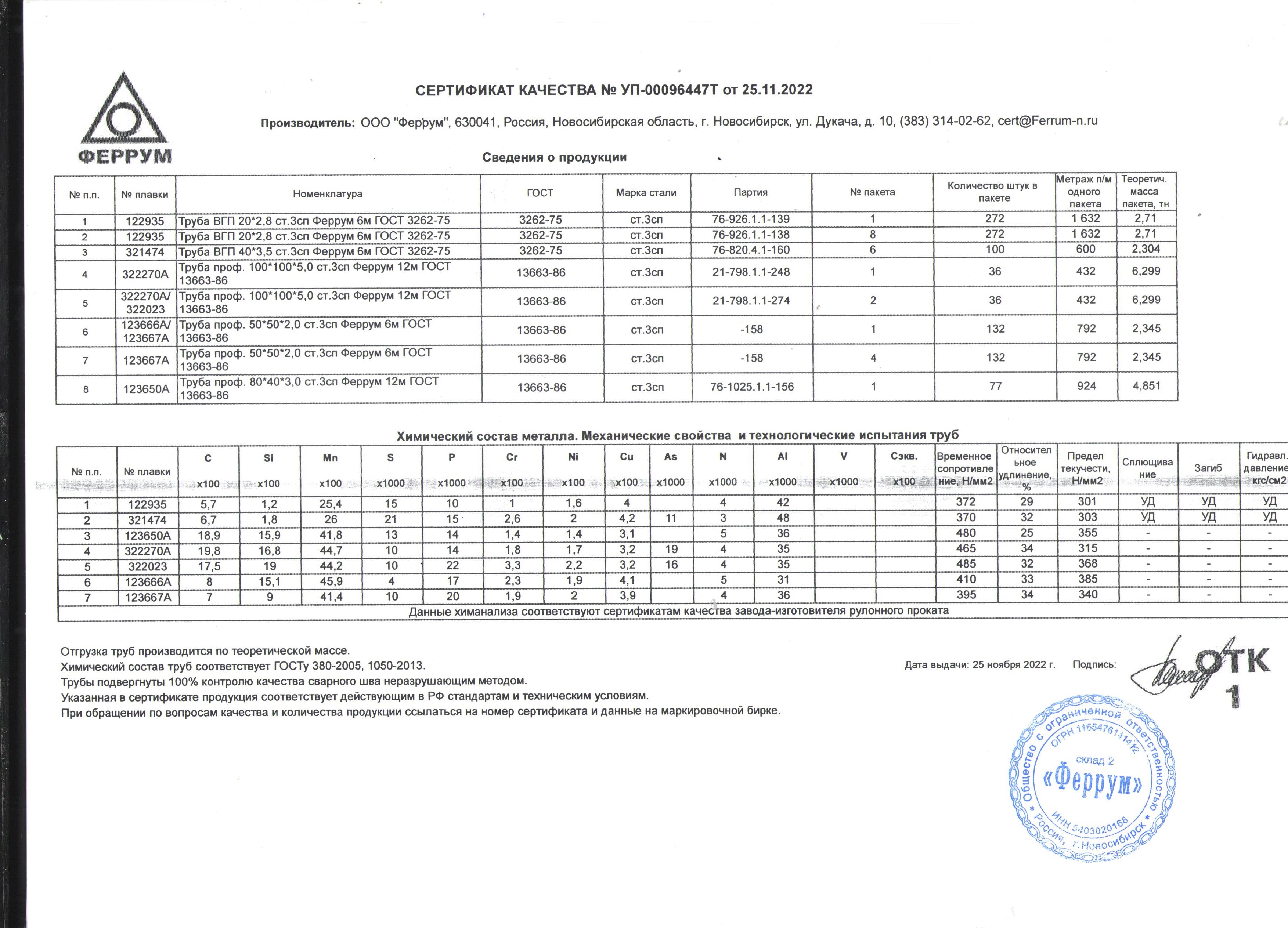 Сертификаты на товар