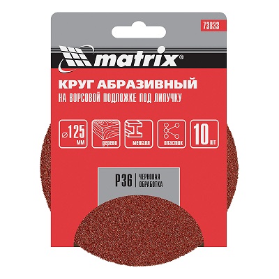 Круг абразивный на ворсовой подложке под "липучку", P 36, 125 мм, 1/10 шт.// Matrix
