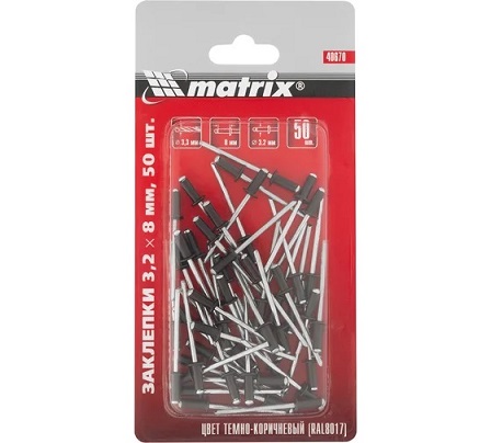 Заклепки 3,2х 8 PAL 8017 (тёмно-коричневые) 1/50шт Matrix