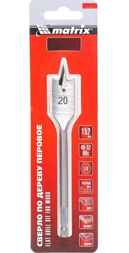 Сверло по дереву перовое 18мм, 6-гранный хвостик Matrix