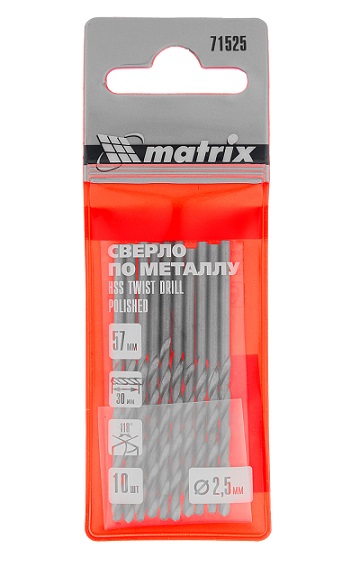 Сверло по металлу 2,5мм полированное, цилиндрический хвостик Matrix