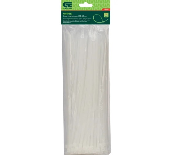 Хомуты пластиковые 350*4,8мм белые 1/50шт //Сибртех