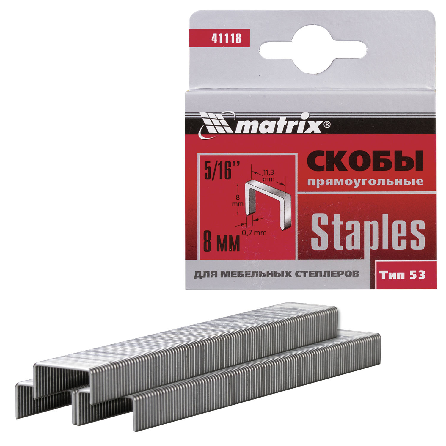 Скобы для мебельного степлера закаленные (8мм, тип скобы 53) 1/1000 шт. Matrix