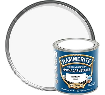 Краска Hammerite гладкая Белая 0,5 л. по металлу, прямо на ржавчину, 3 в 1