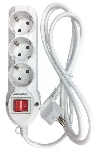 Сетевой удлинитель 3 гнезда 3м с выкл. 16А з/к 3,5кВт (S-303) Спутник