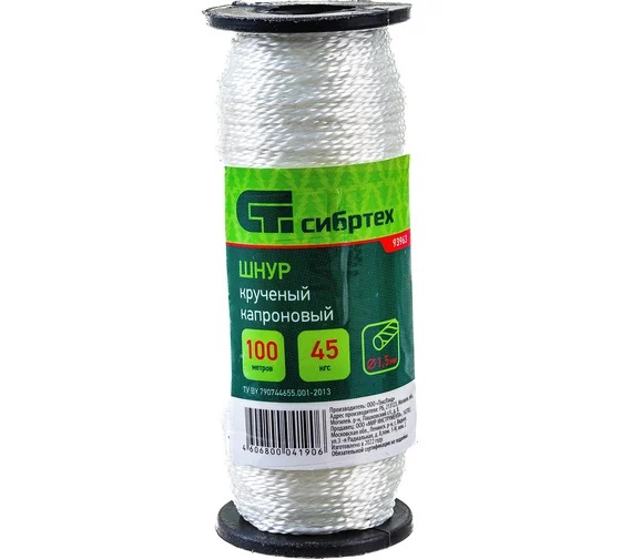 Шнур крученый капроновый 1,5мм дл-100м на катушке